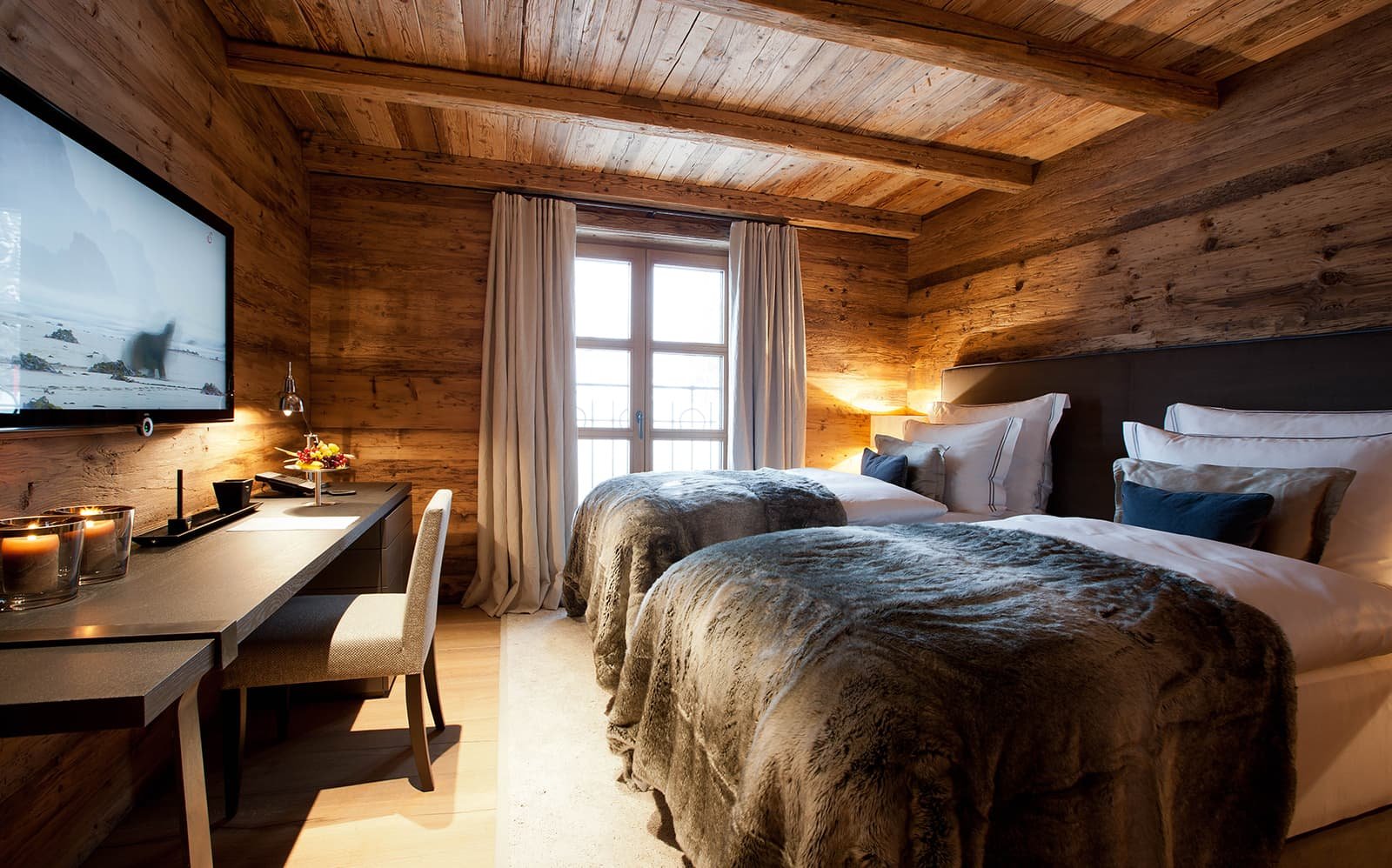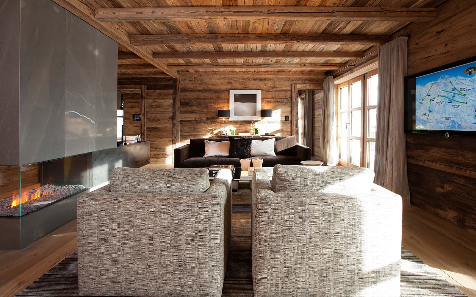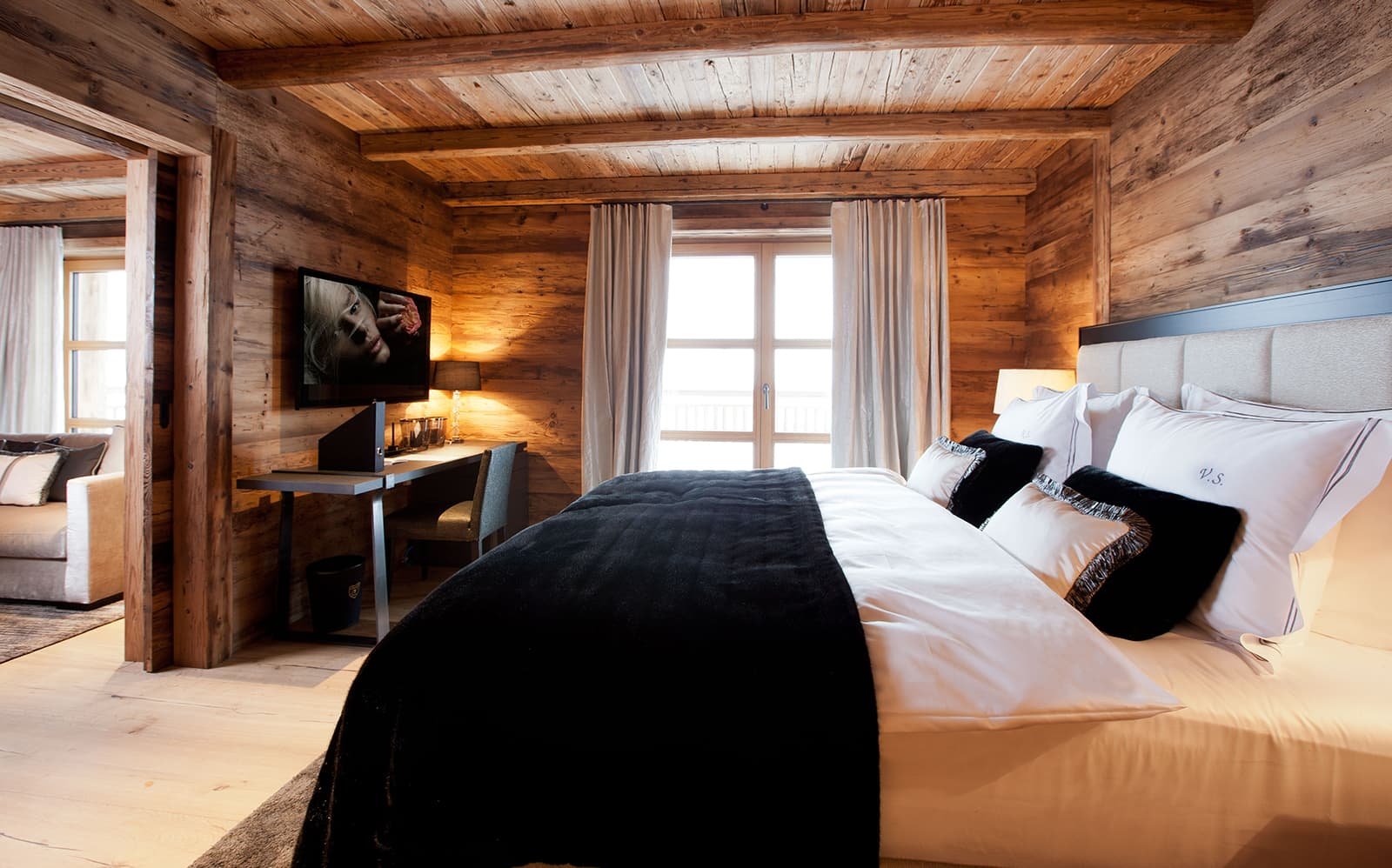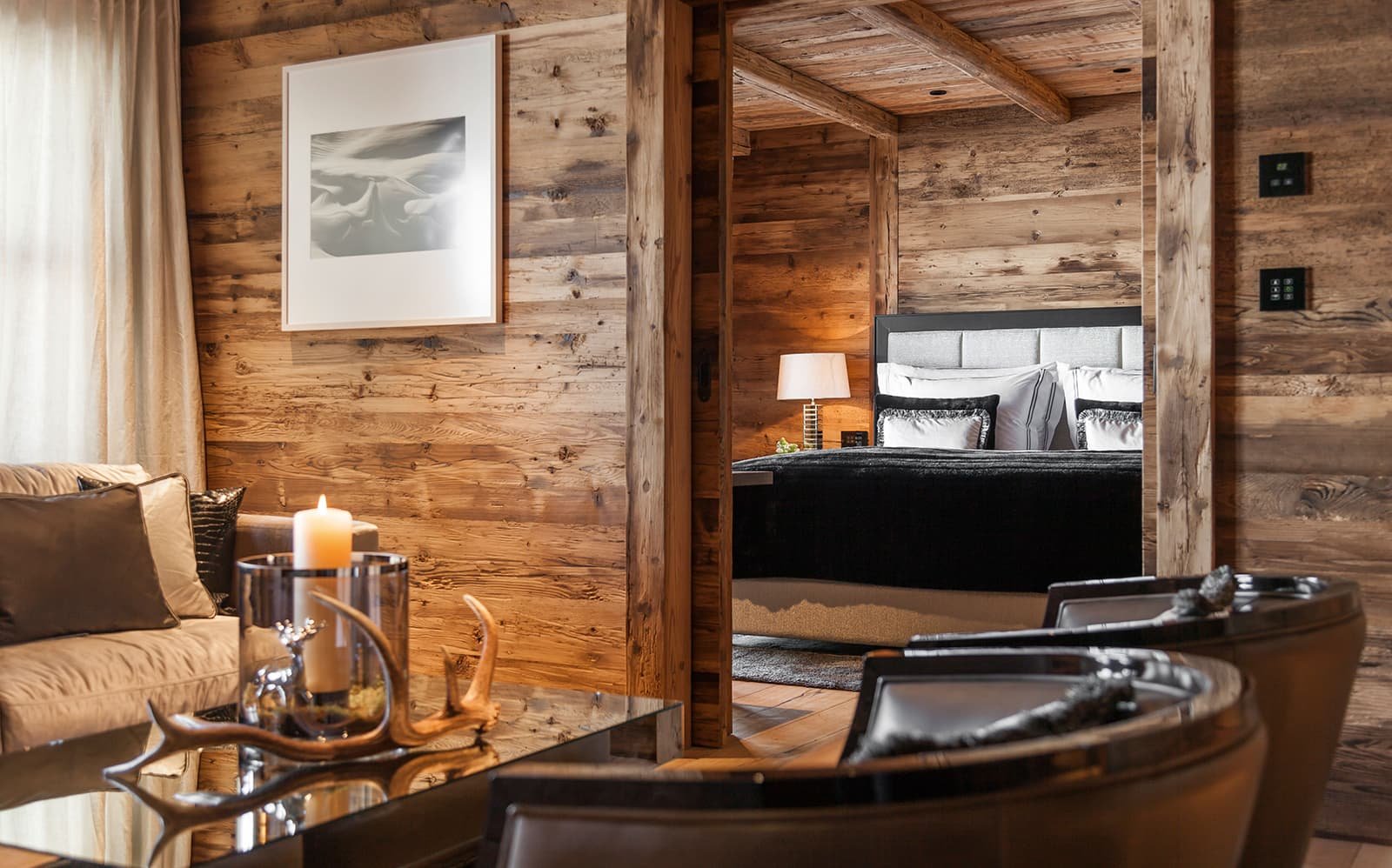 Вид из номеров-люкс - это постоянное напоминание о внушительной, почти магической энергии гор, окружающих шале N. И вид внутри шале не менее завораживающий.