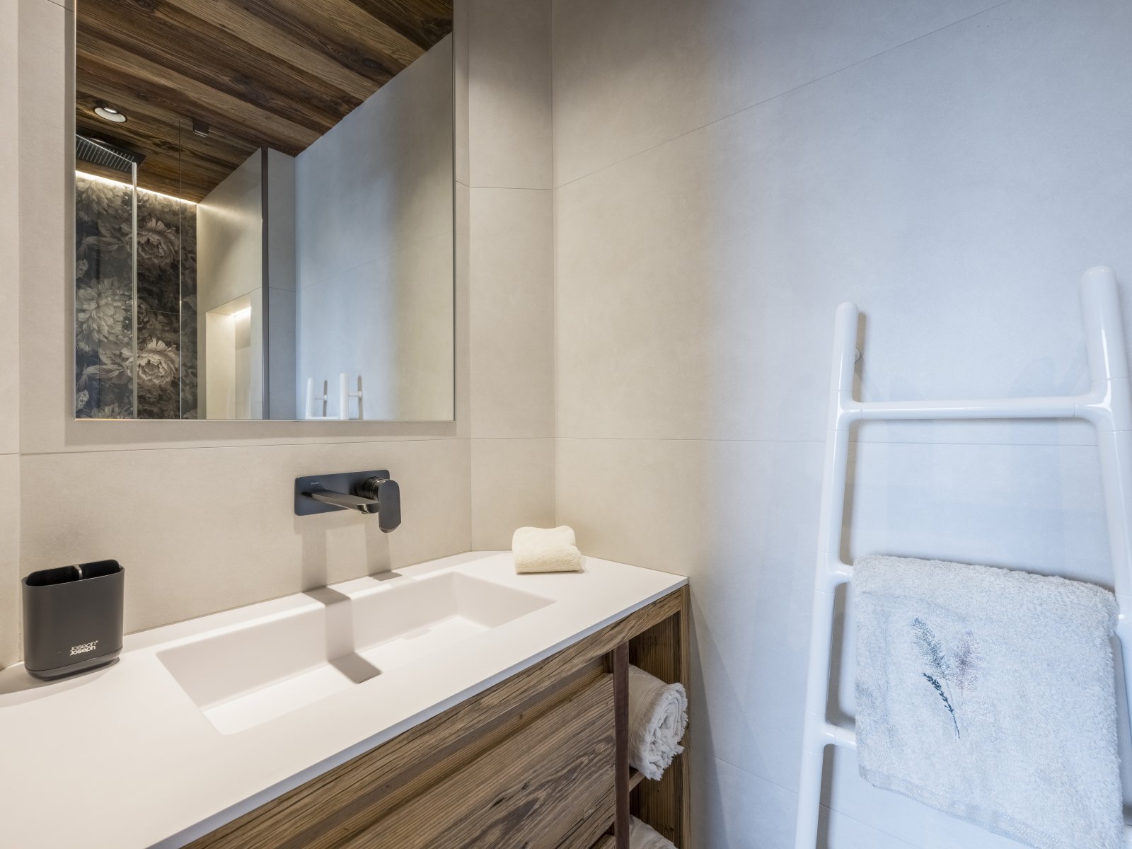 Наконец, закрытый кабинет с диваном-кроватью и отдельной душевой комнатой дополняет удобства этого престижного шале. Идеально подходящее для удаленной работы, это пространство также может служить дополнительной спальней по мере необходимости.