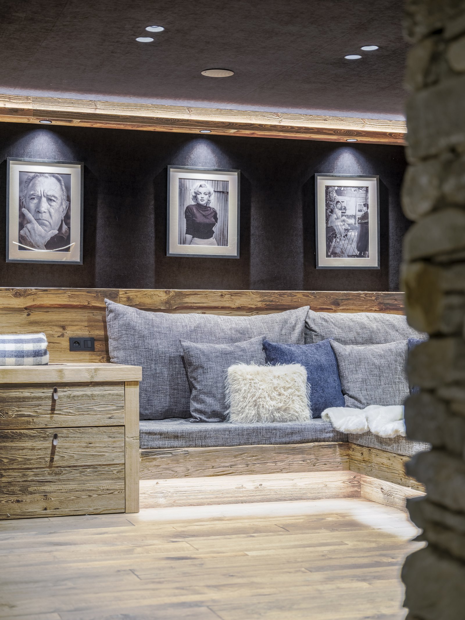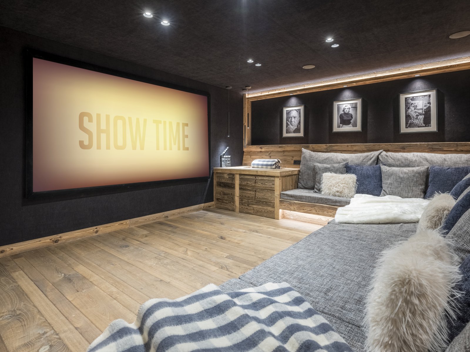 Это роскошное шале также покорит вас своим полностью оборудованным кинозалом высокого класса: ультракомфортными диванами, высококачественной аудиосистемой и большим экраном, чтобы наслаждаться уютными вечерами после дня, проведенного на склонах или пешеходных тропах.