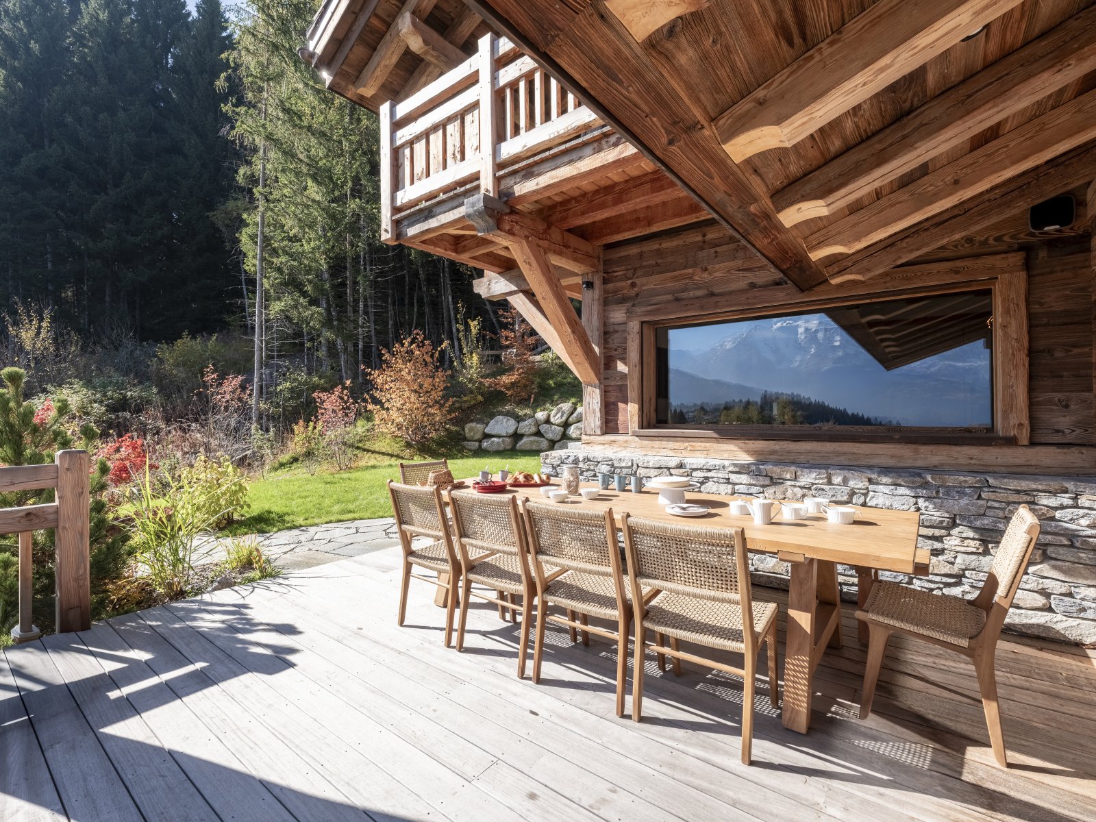Расположенное в ландшафтном саду площадью 1400 м², это шале с джакузи в Комблю раскрывает потрясающую террасу с видом на Монблан на 180° и полной приватностью.
