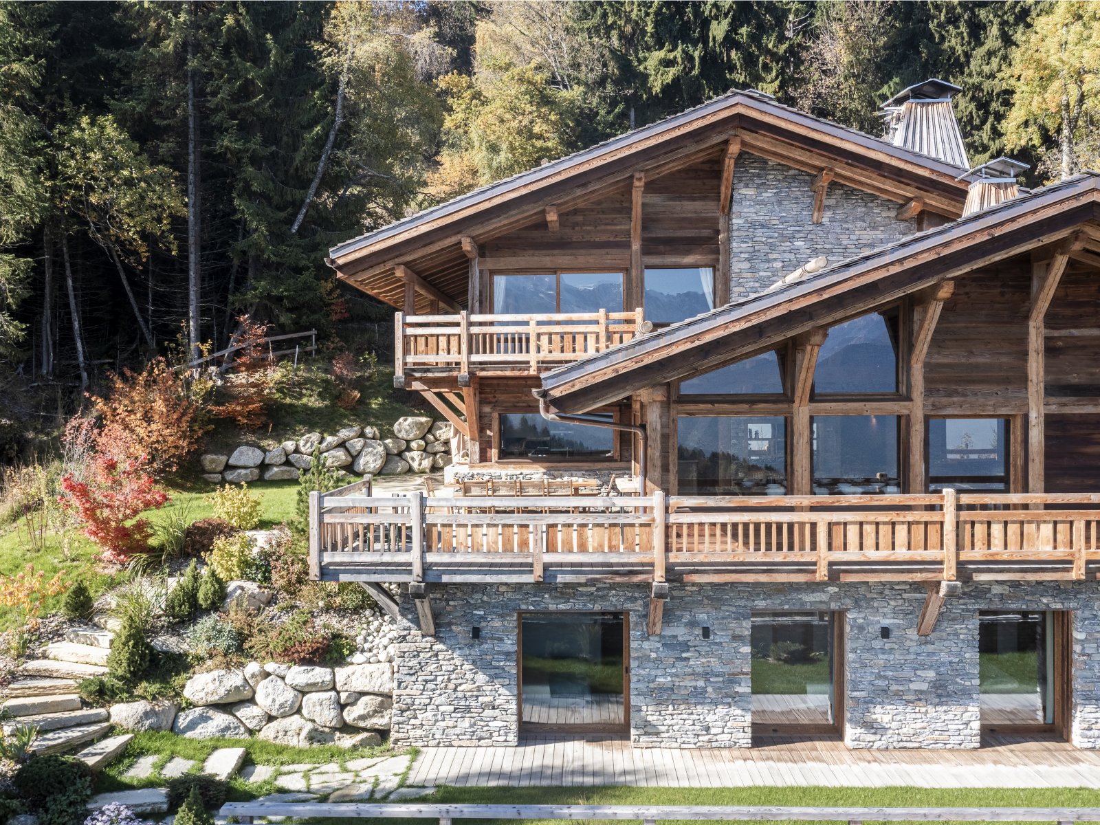 Расположенное на вершине небольшого холма с видом на долину и предлагающее захватывающую панораму массива Монблан, шале Marianna, занимающее четыре уровня, предлагает просторные, открытые и светлые жилые помещения.