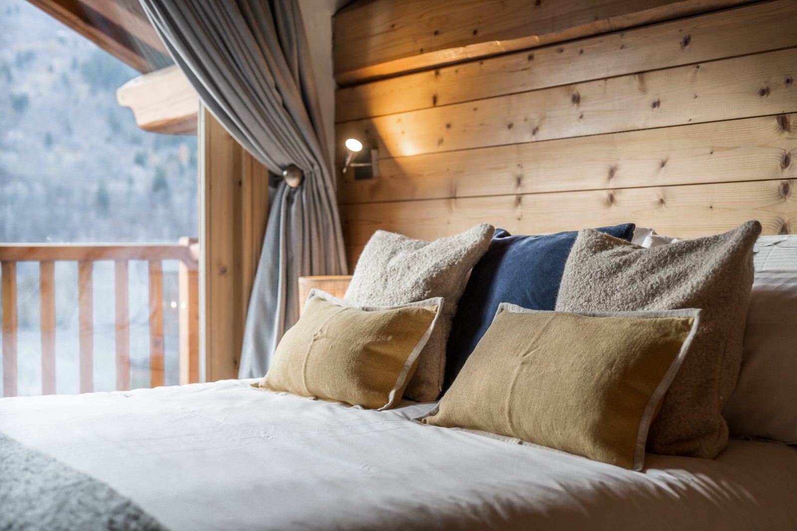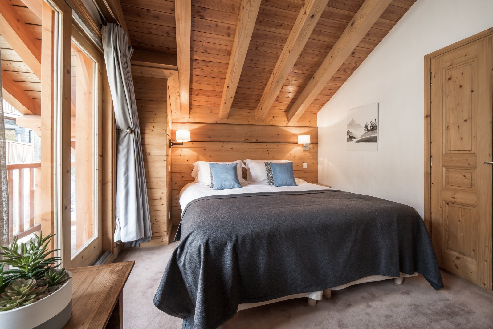 В каждом из шале шесть спален с ванными комнатами обставлены индивидуальной мебелью из восхитительных тканей, а в четырех комнатах есть балконы с видом на красивые горы. Все спальни, кроме одной, могут быть сделаны в двухместные или двухместные, а четыре из них подходят для размещения детских кроваток.