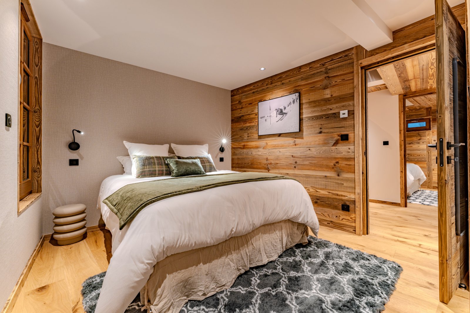 Это просторное шале занимает три этажа и предлагает главную спальню с собственной душевой комнатой и цифровым управлением отоплением, две спальни с двуспальными кроватями, оформленные в элегантном горном стиле, и одну общую спальню с двухъярусными кроватями для 4 детей (от 6 лет). Во всех комнатах есть уютное освещение, качественное постельное белье, плотные шторы и вместительные места для хранения вещей.