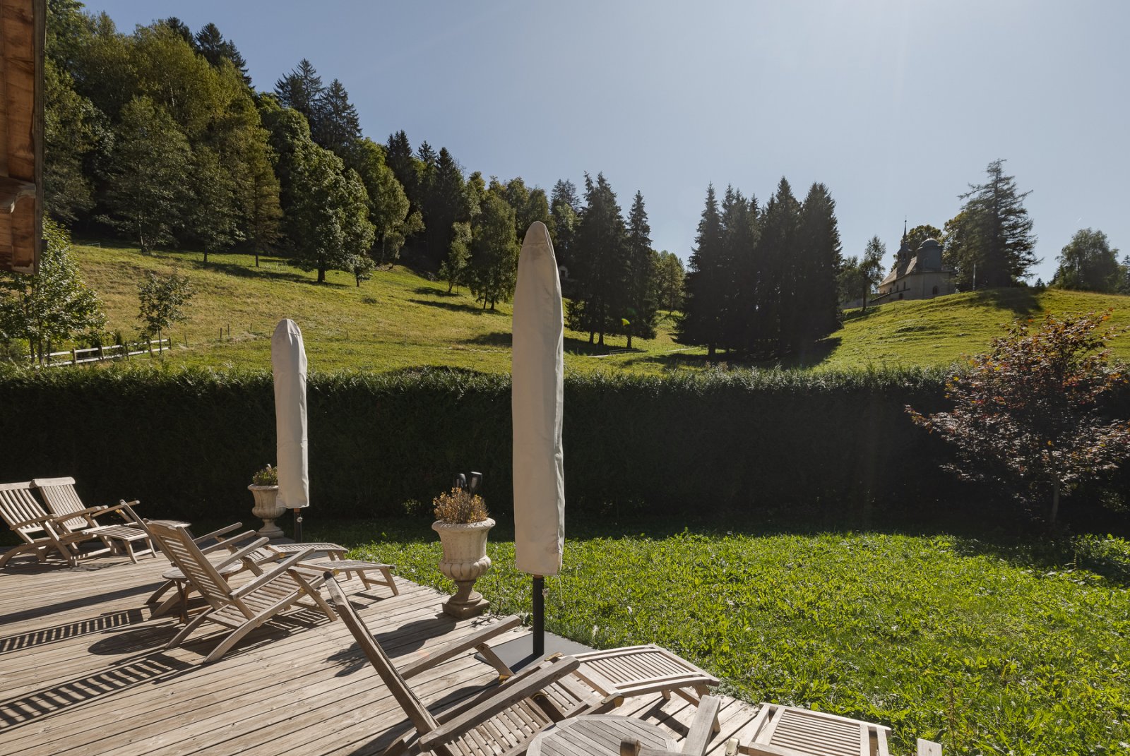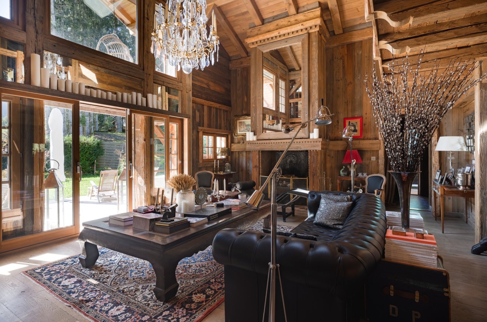 В центре шале находится просторная, наполненная светом гостиная с большими окнами, ведущими в сад и на террасу, которая создает умиротворяющую атмосферу в любое время года.