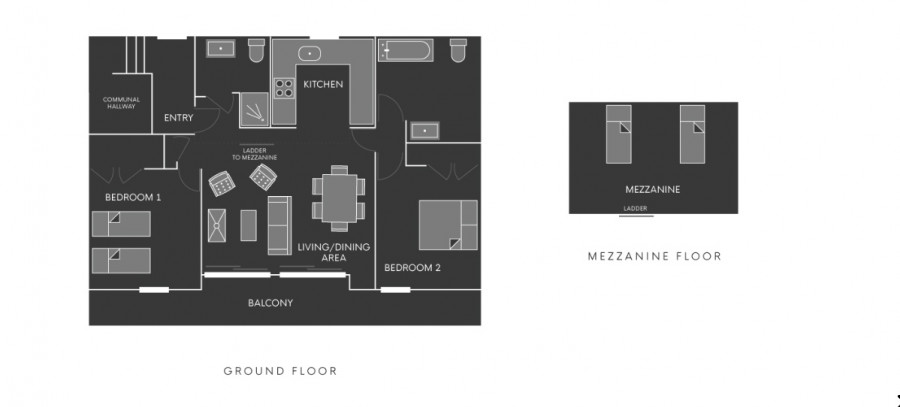 There is also a mezzanine level which provides a further 2 single mattresses, accessed via a central vertical ladder from the open plan lounge area (not recommended for children under 10 years). Please note head height is restricted on the mezzanine level.