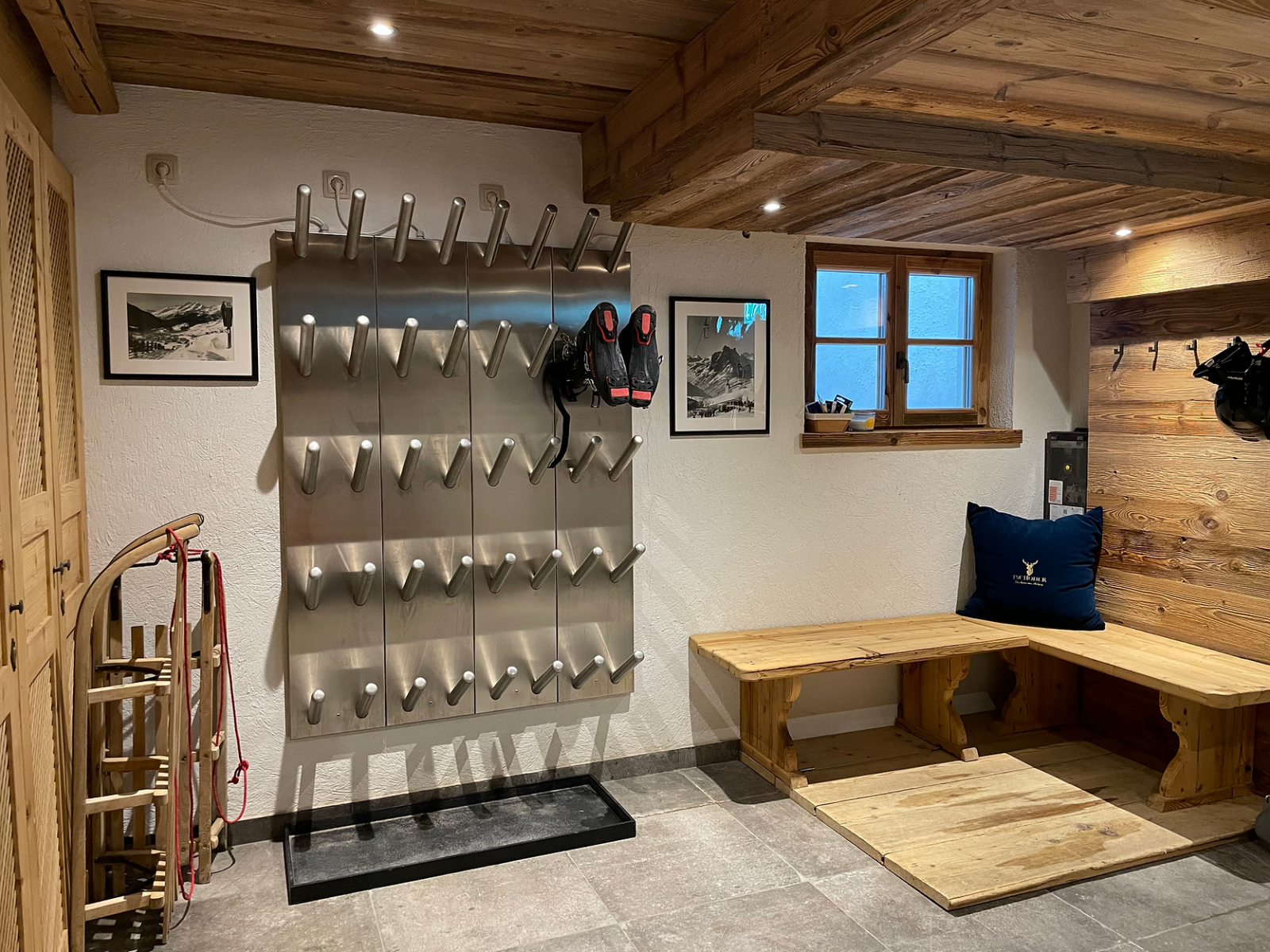 Возвращаясь со склонов, вы можете войти в общую комнату для катания на лыжах с трассы, а также есть много места для хранения лыжной одежды, головных уборов и перчаток.