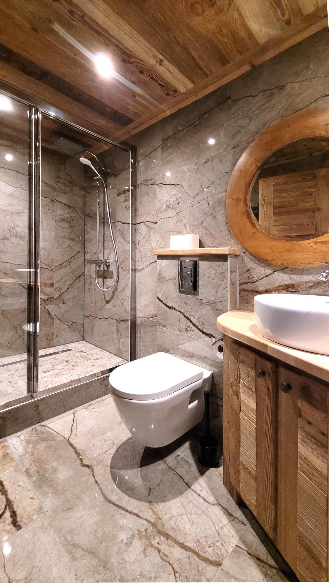В шале семь комфортабельно меблированных двухместных/спальных комнат с двумя односпальными кроватями и одна трехместная спальня, большинство из которых имеют собственные ванные комнаты. На верхнем этаже ванная комната общая для номеров 5 и 6, в номере 7 есть собственная ванная комната, а в номере 8 – ванная комната в номере.