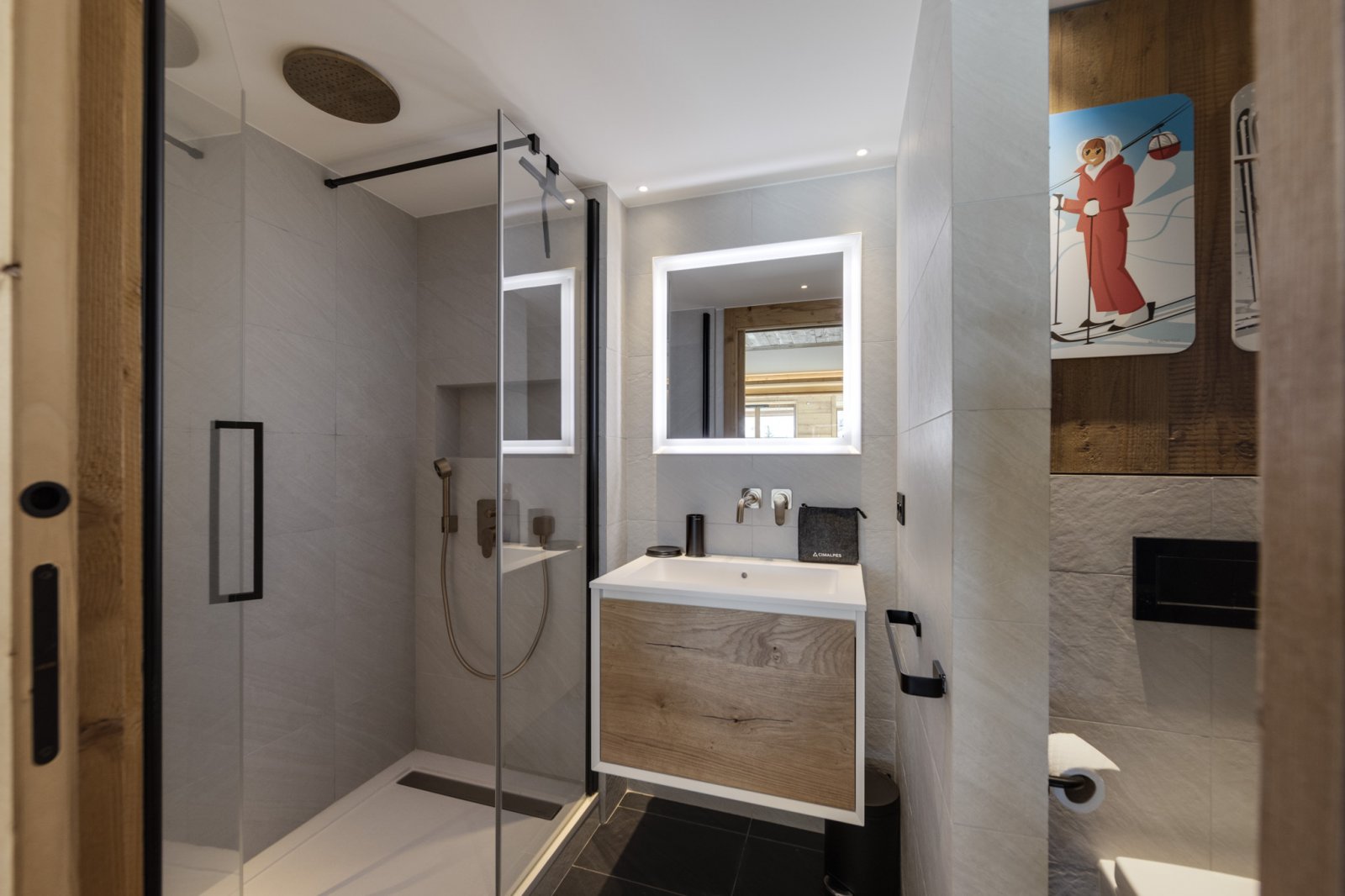 С самого входа квартира очаровывает своими просторными комнатами, освещенностью и элегантной атмосферой. Планировка была продумана так, чтобы обеспечить каждому комфорт и уединение, одновременно способствуя общению. Гостиная, состоящая из уютной гостиной с камином, уютной столовой и полностью оборудованной открытой кухни, приглашает отдохнуть после дня, проведенного на лыжных трассах или в походе. Обустроенная терраса позволяет насладиться чистым горным воздухом и спокойным отдыхом.
