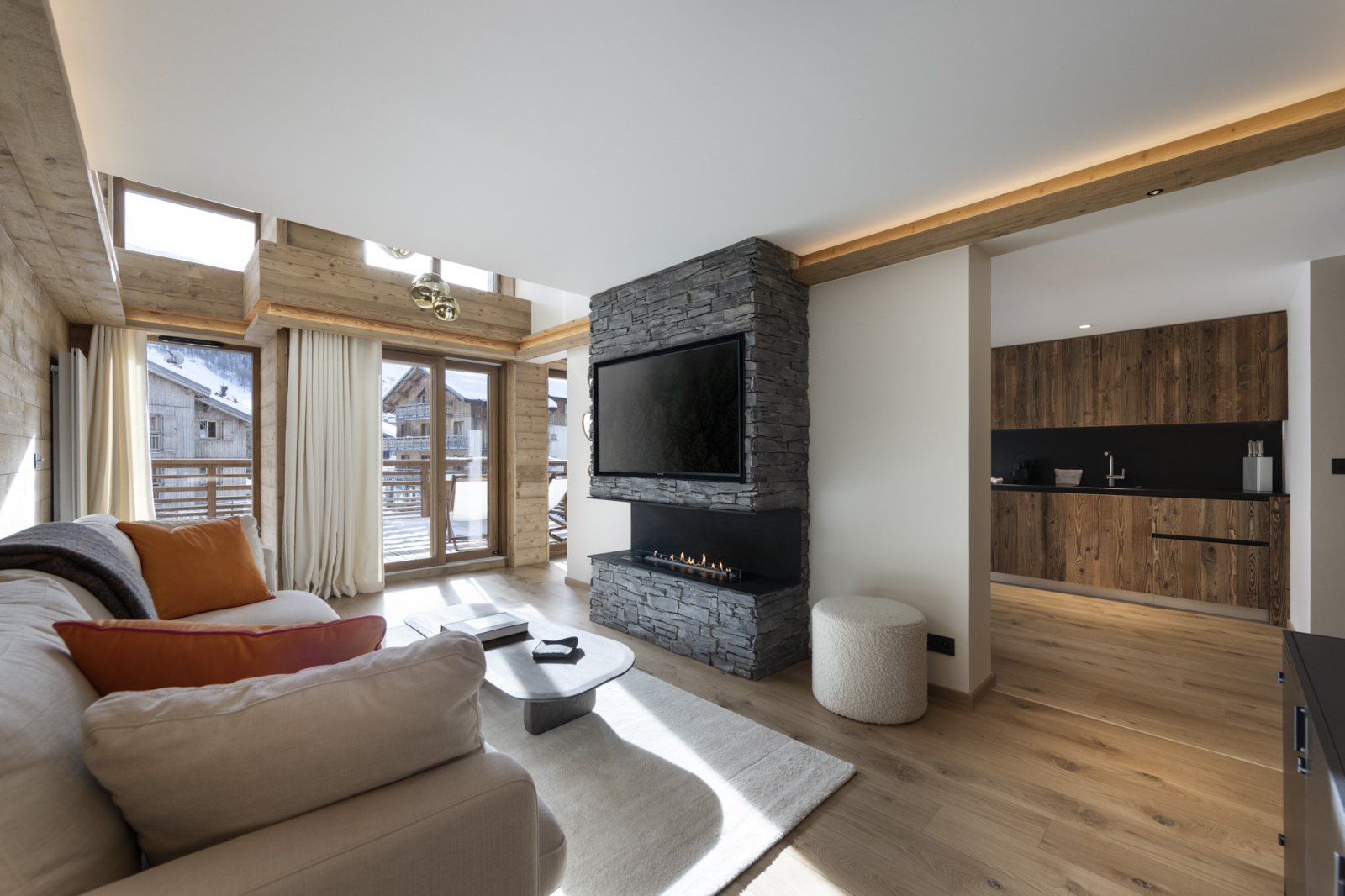 Расположенный всего в 450 метрах от подножия горнолыжных трасс, в тихом и престижном жилом районе, этот великолепный дуплекс площадью 104 м², расположенный на третьем этаже элитного жилого комплекса, является идеальным местом для отдыха с семьей или друзьями.