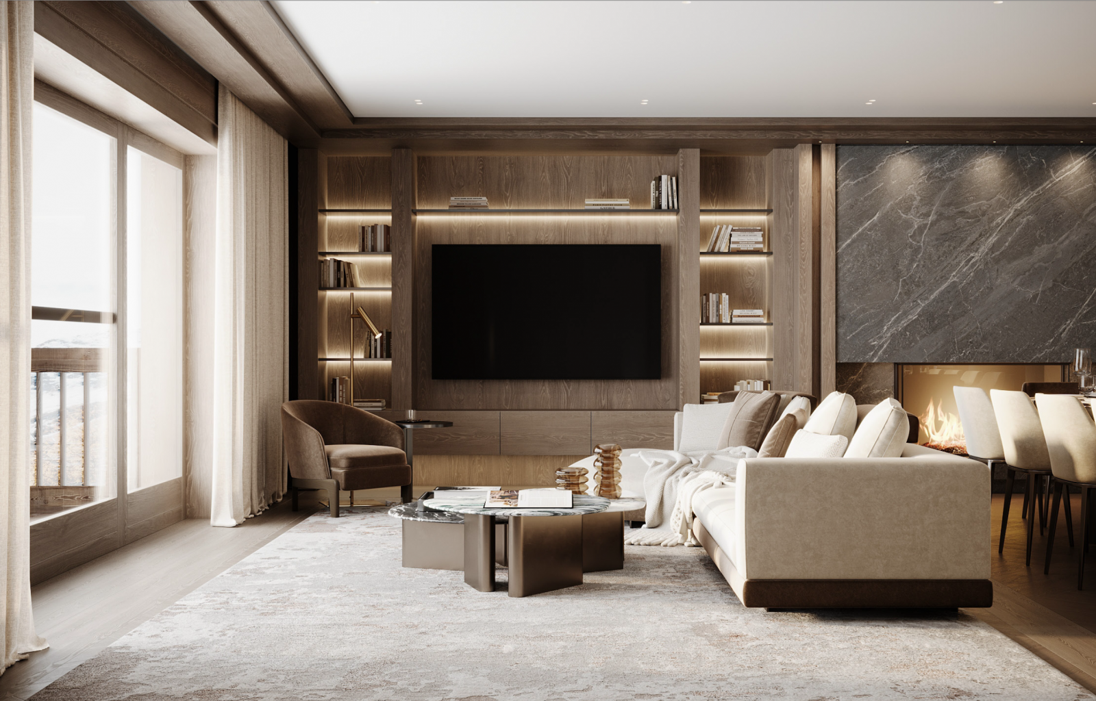 Le Parc 1963 считается самым престижным жилым комплексом в Валь-д'Изер, его строительство планируется завершить в ноябре 2025 года. Расположенный на главной улице, он находится в непосредственной близости от мест проведения праздничных мероприятий деревни, а до основных точек сбора лыжных школ и подъемников можно дойти пешком за несколько минут. Здесь есть все, что можно пожелать от роскошного лыжного отдыха: идеальное расположение, потрясающие виды, высококачественная отделка и соответствующий уровень обслуживания. Le Parc No.4 Solène может разместить восемь человек в четырех просторных спальнях и предлагает панорамный вид на юг, на гору Бельварде. Эта роскошная резиденция включает в себя частную террасу площадью 16 м², с которой можно наслаждаться видами, а также множество первоклассных удобств, таких как стойка консьержа площадью 40 м², фитнес-центр площадью 38 м², лыжная комната площадью 115 м² и крытая парковка; все ваши потребности будут удовлетворены. Этот комплекс идеально подходит для семей или небольших групп, которые ищут изысканный роскошный лыжный отдых в Альпах. Предлагается в рамках нашей услуги Crafted Service, которая включает проживание с завтраком, а также возможность повышения класса обслуживания с премиальными услугами. Обратите внимание, что представленные здесь визуализации демонстрируют концепцию объекта, и окончательные детали могут измениться.