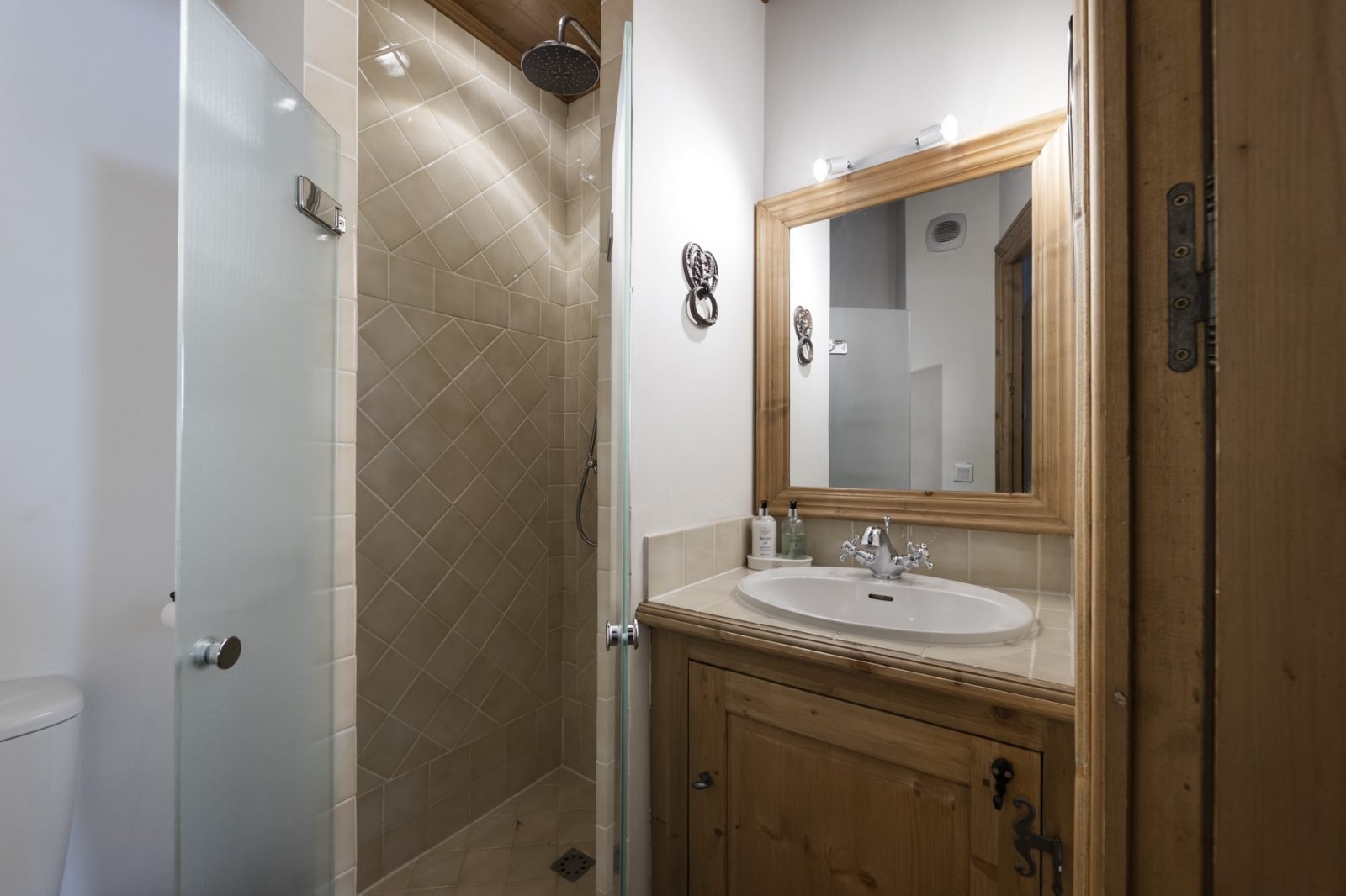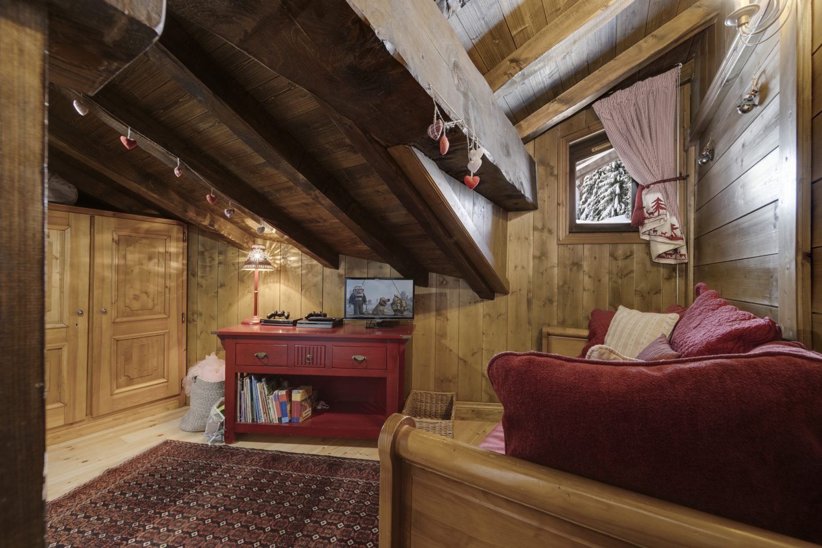 На верхнем этаже находится третья спальня с двумя односпальными кроватями, ванной комнатой с душем и выходом на балкон. Есть также детская игровая комната/уютная комната с телевизором и играми.