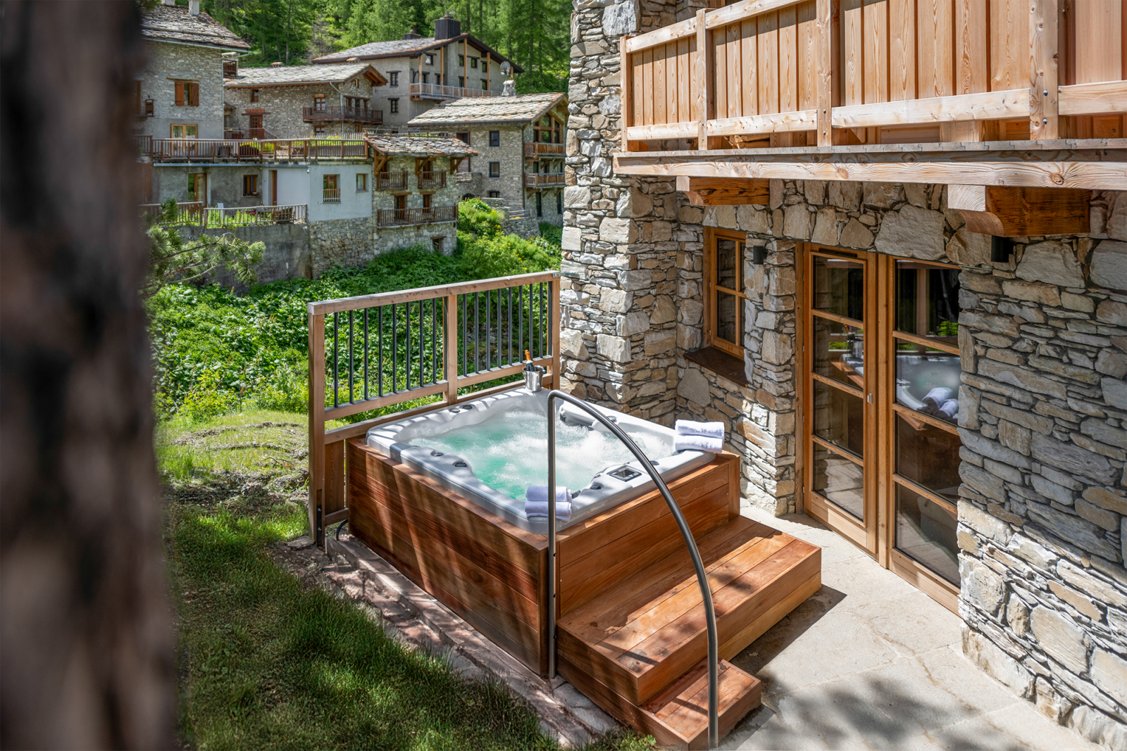 Chalet Les Sources de l’Isère is an elegant chalet-apartment which can sleep up to 14 people. It is situated in the charming village of Le Fornet and is only 200m from the piste. Located in the same building as its sister chalet Atacama, it features 7 bedrooms, each with an ensuite bathroom, a sumptuous spa area and a beautiful hot tub on the terrace overlooking the Isère river, which enjoys spectacular views of the surrounding mountains. The perfect place to unwind with a glass of champagne after a hard day on the slopes. The expansive living room has a huge dining table, which is ideal for gathering around with family and friends in supreme comfort. The chalet is furnished to the highest standard, with the blend of traditional timber features and luxurious, modern interiors creating a true Alpine haven.