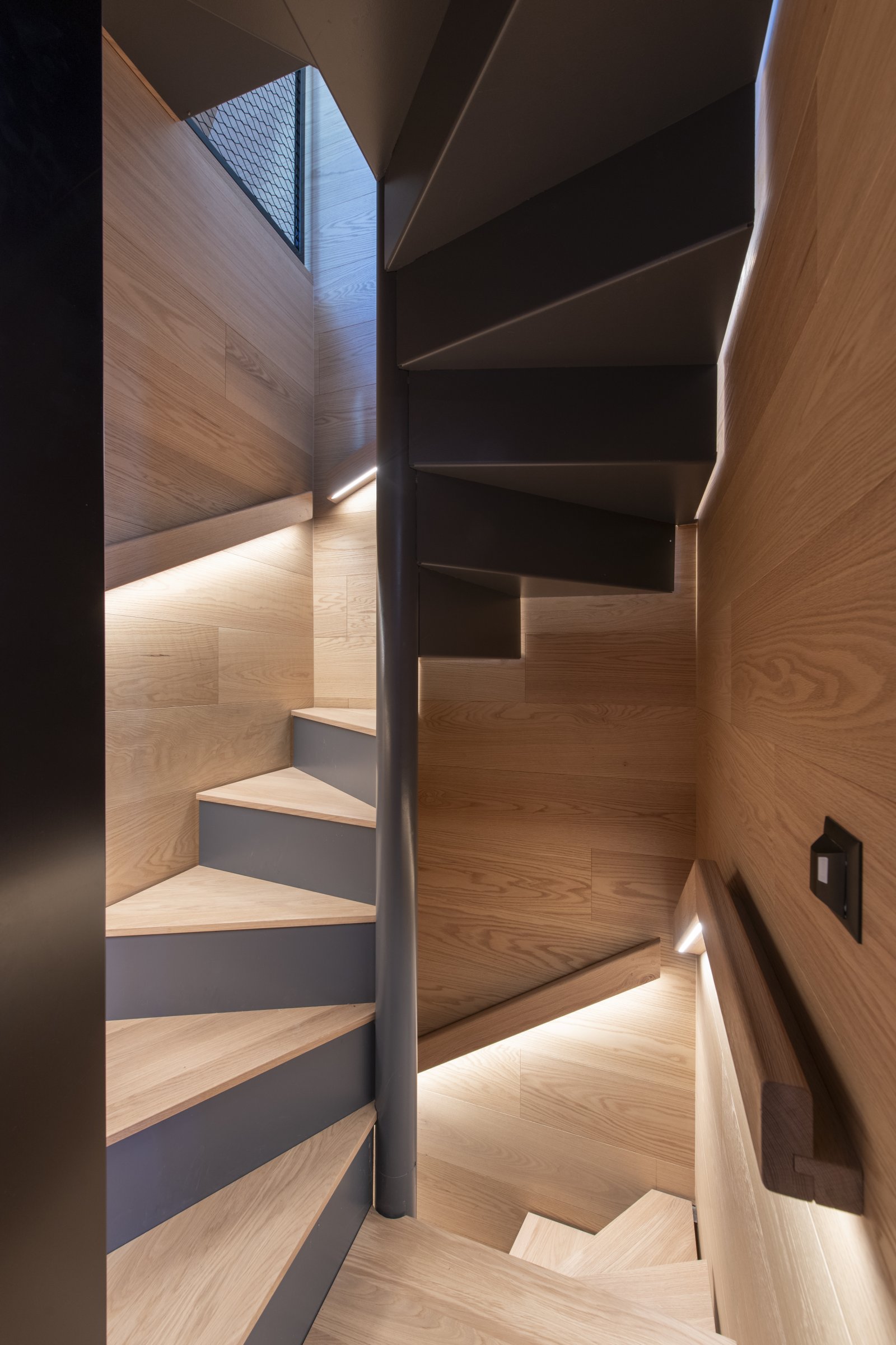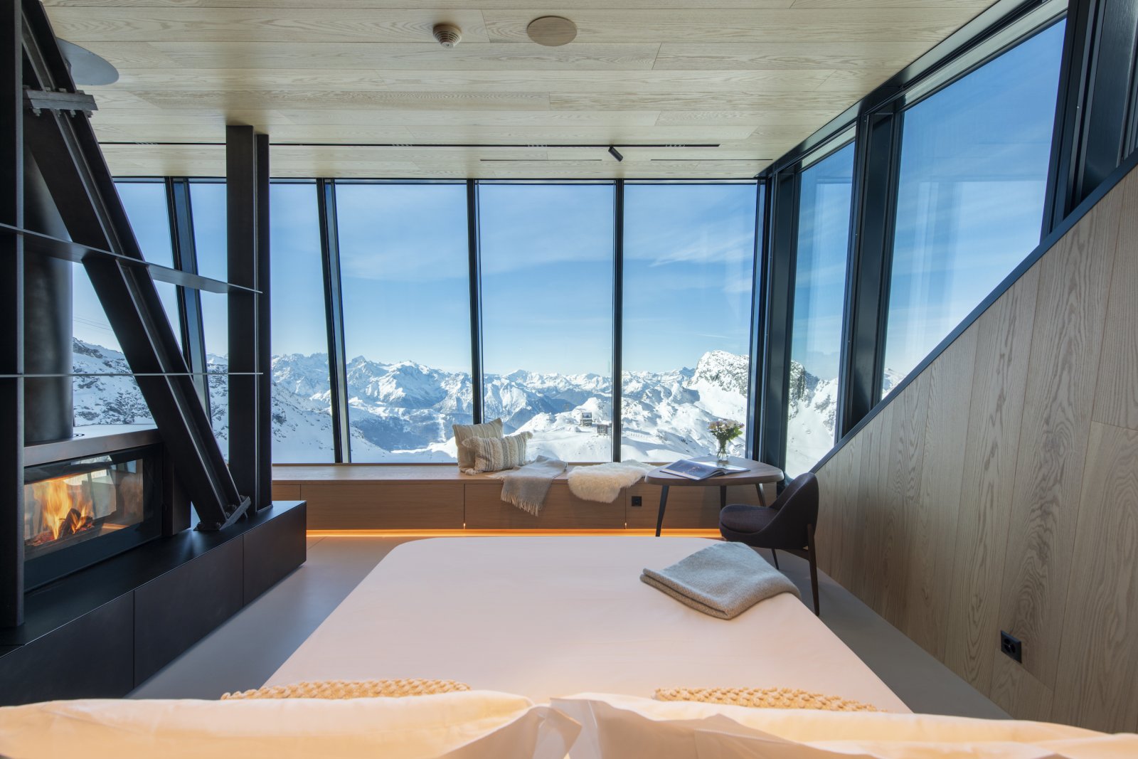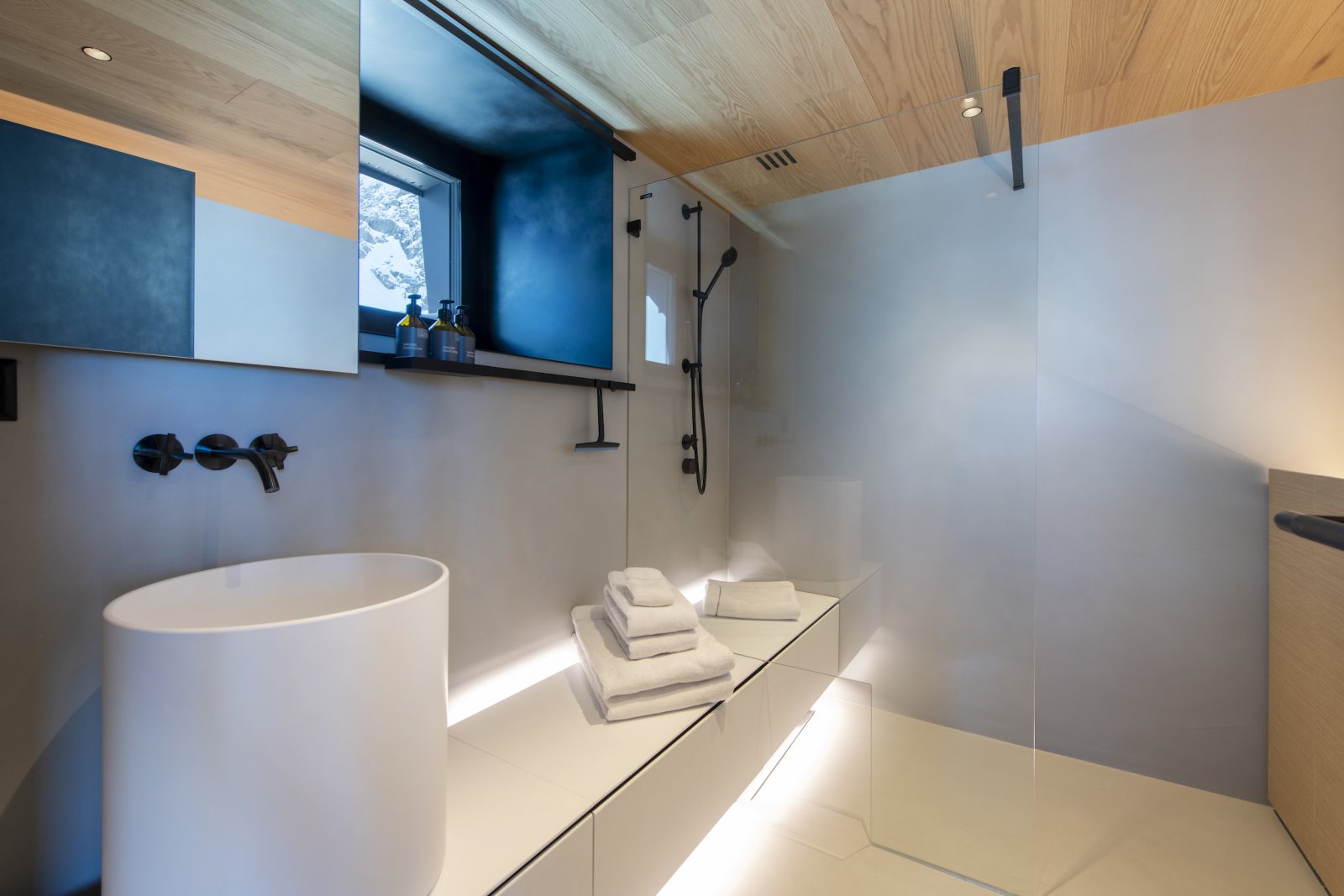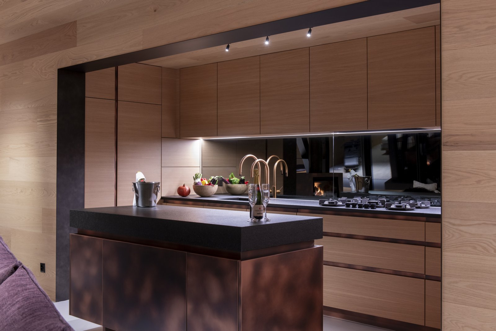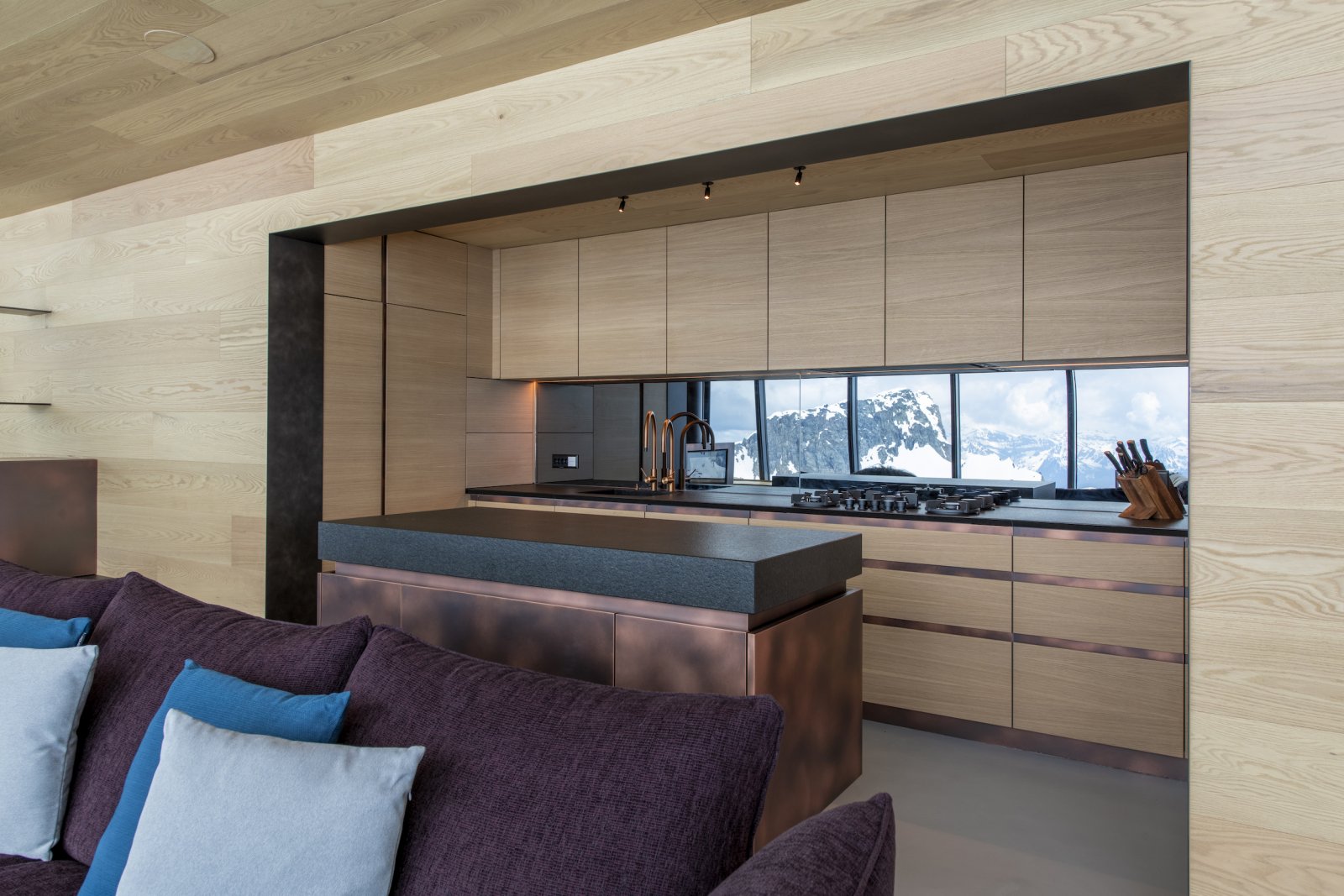 Главная комната открытой планировки является центром кабана — панорамные окна обрамляют каждую французскую вершину высотой 4000 метров. Полированные бетонные полы сочетаются с балками из восстановленной древесины; подвесной камин служит центром пространства. Интеллектуальное освещение адаптируется к оттенкам заката, а скрытые динамики транслируют музыку от джаза до сообщений о лавинах. Это одновременно и смотровая площадка, и уютное убежище.