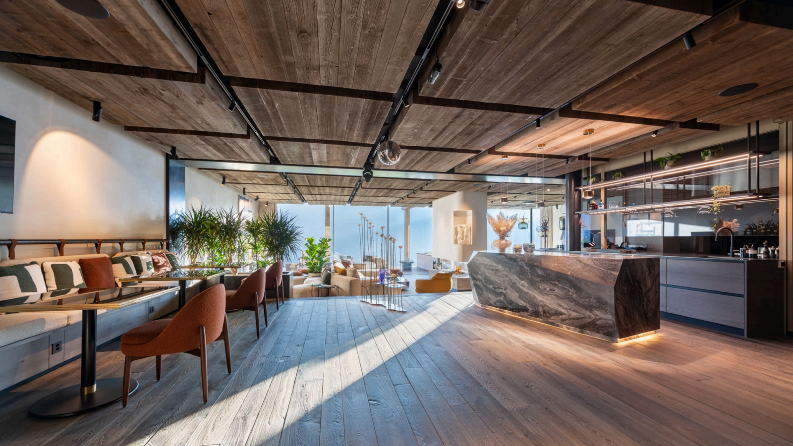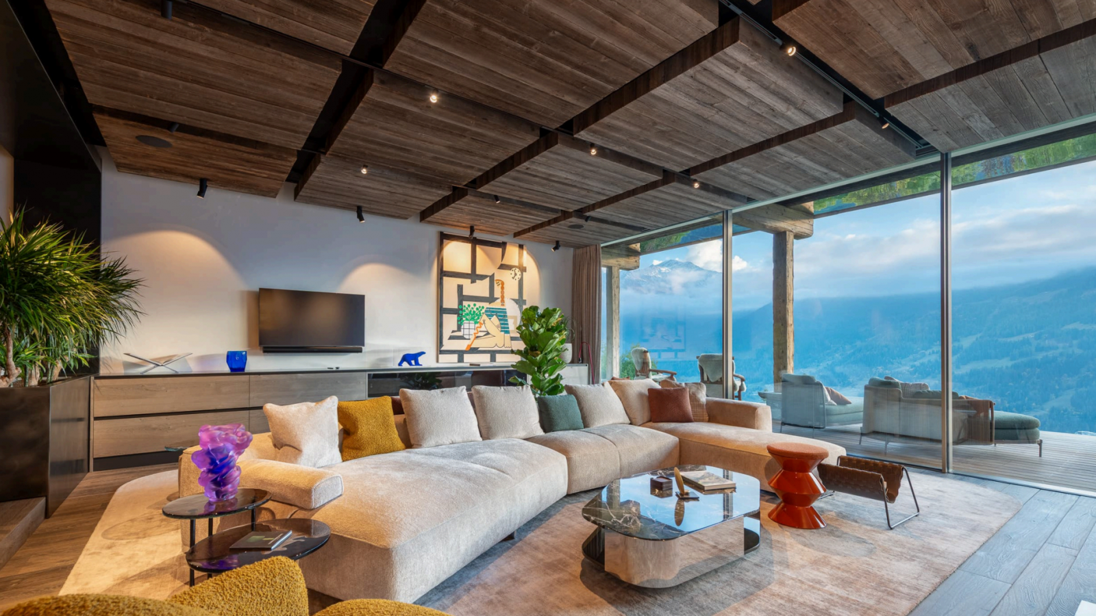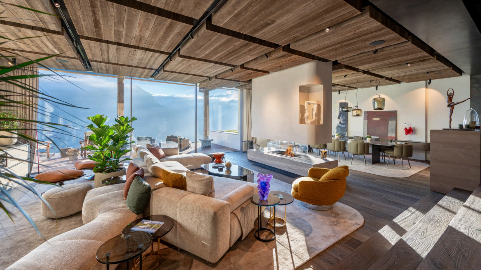 Войдя в главный корпус, вы попадаете в захватывающие дух просторные жилые помещения открытой планировки, где стеклянные двери от пола до потолка обрамляют альпийский пейзаж. Потрясающая обеденная зона и двойная гостиная создают идеальную обстановку для изысканных блюд мирового класса, с камином и беспрепятственным выходом на огромную террасу, обращенную на юг. Профессиональная кухня, оборудованная для работы команды поваров, обеспечивает квалифицированную кулинарную поддержку, а отдельный вход ведет в помещение для хранения лыжного снаряжения и на просторную частную парковку.