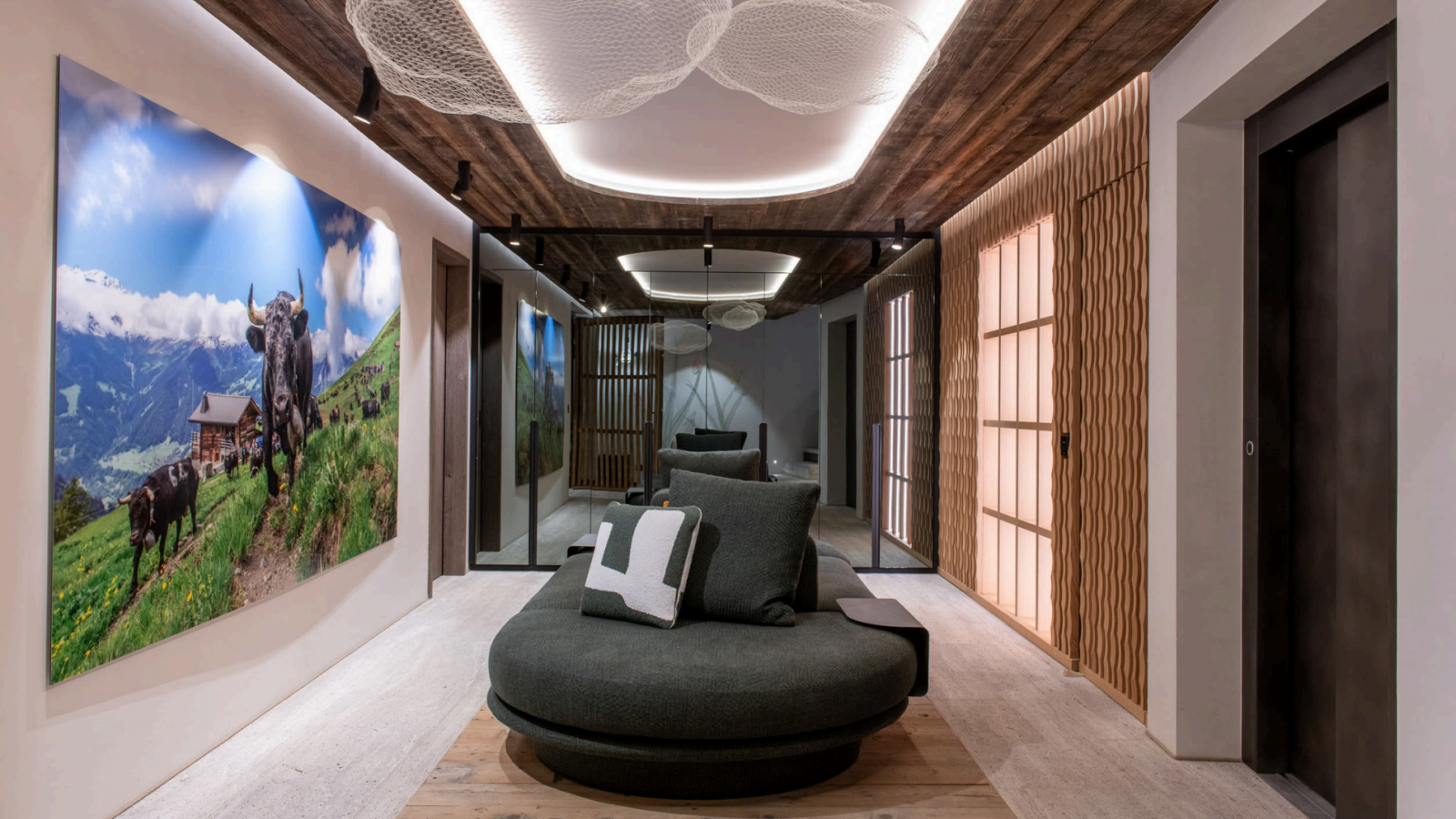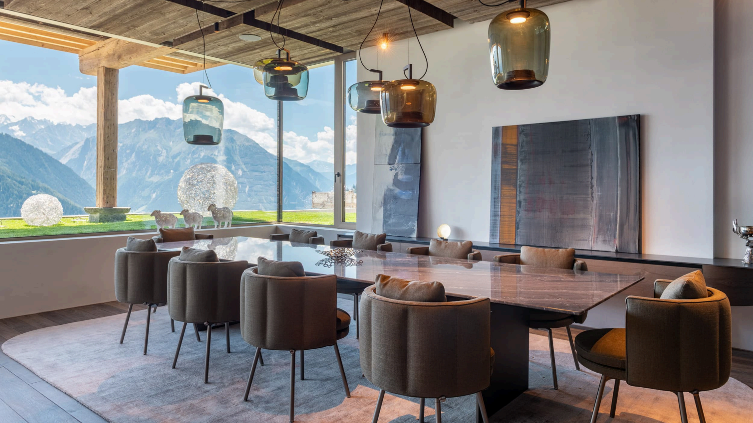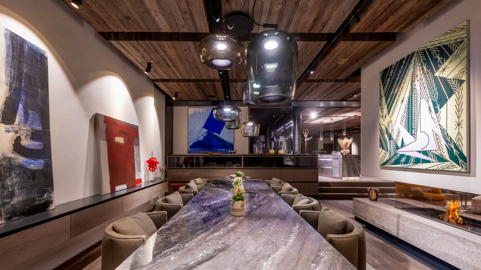 Войдя в главный корпус, вы попадаете в захватывающие дух просторные жилые помещения открытой планировки, где стеклянные двери от пола до потолка обрамляют альпийский пейзаж. Потрясающая обеденная зона и двойная гостиная создают идеальную обстановку для изысканных блюд мирового класса, с камином и беспрепятственным выходом на огромную террасу, обращенную на юг. Профессиональная кухня, оборудованная для работы команды поваров, обеспечивает квалифицированную кулинарную поддержку, а отдельный вход ведет в помещение для хранения лыжного снаряжения и на просторную частную парковку.