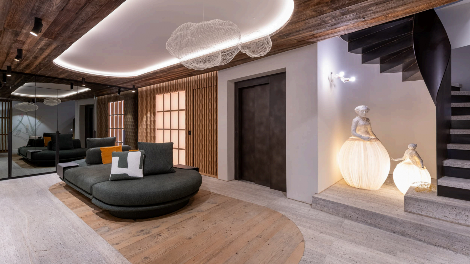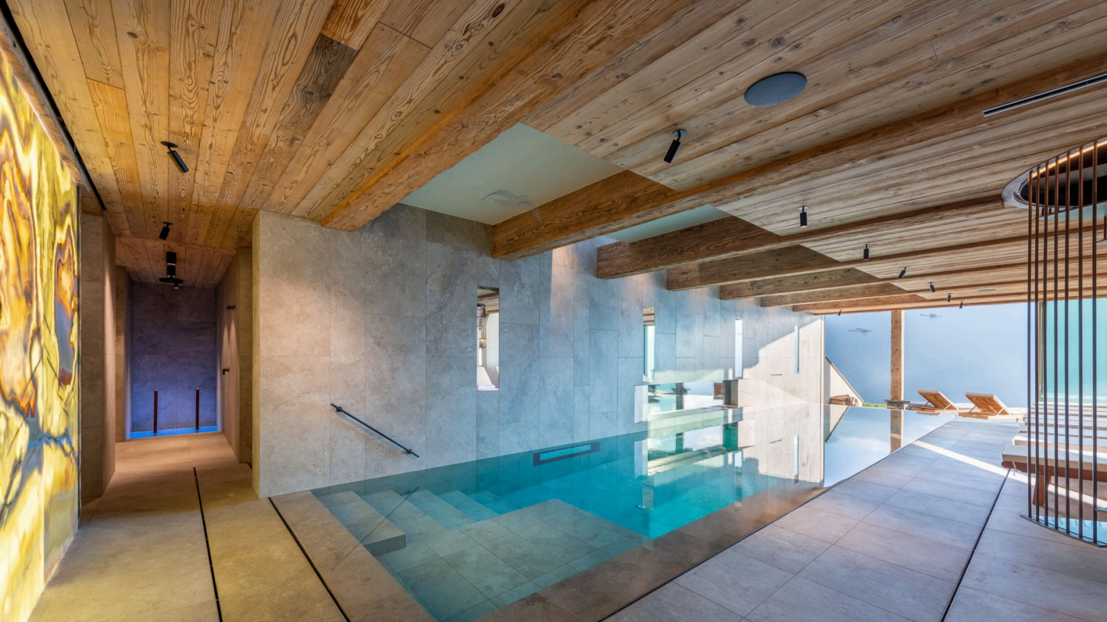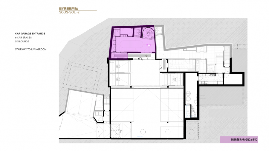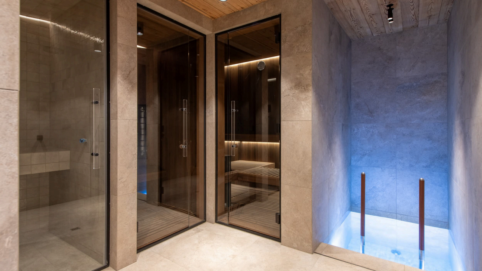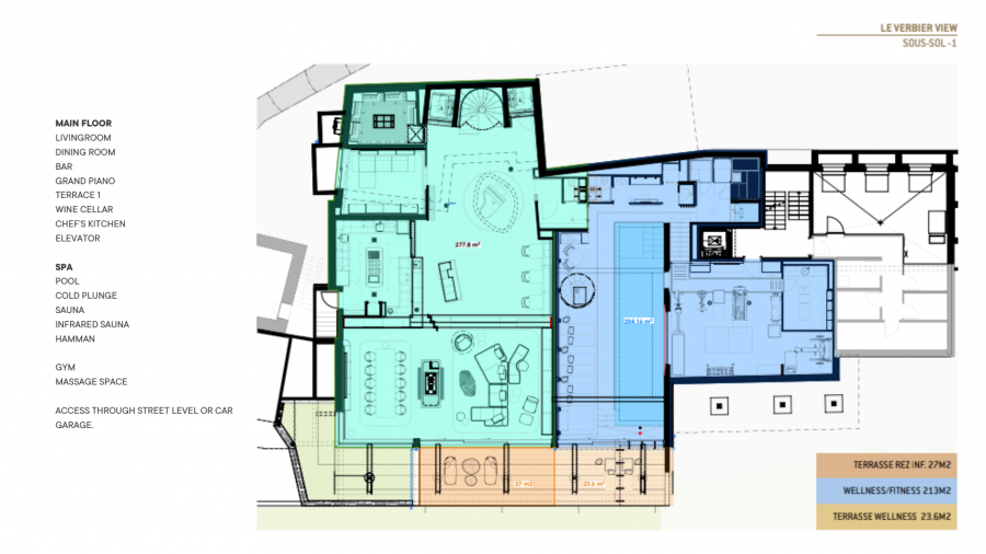 Нижние уровни представляют собой образец оздоровительного отдыха, располагая частным спа-центром площадью 213 кв. м. Этот исключительный комплекс включает в себя большой крытый бассейн, полностью оборудованный фитнес-центр, хаммам, сауну и отдельный процедурный кабинет. Снаружи раскинулся окружающий сад площадью 525 кв. м, предлагающий безмятежный отдых на большой высоте.