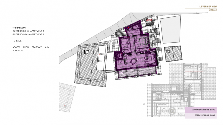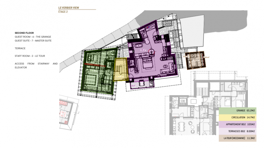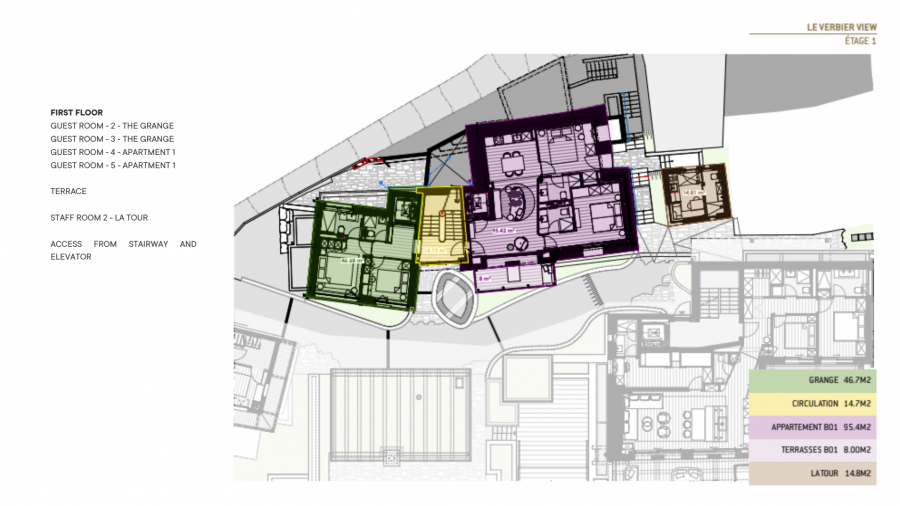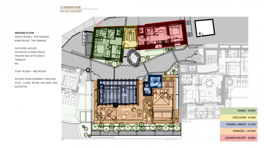 Из шале открываются непревзойденные панорамные виды на долину Вербье. В шале расположены десять высококлассных люксов, созданных для размещения до 20 гостей в формате «бутик-отеля». Верхние этажи отведены под эксклюзивные номера, включающие просторные люксы с ванными комнатами и прямым выходом на частные балконы и террасы общей площадью более 140 кв. м.