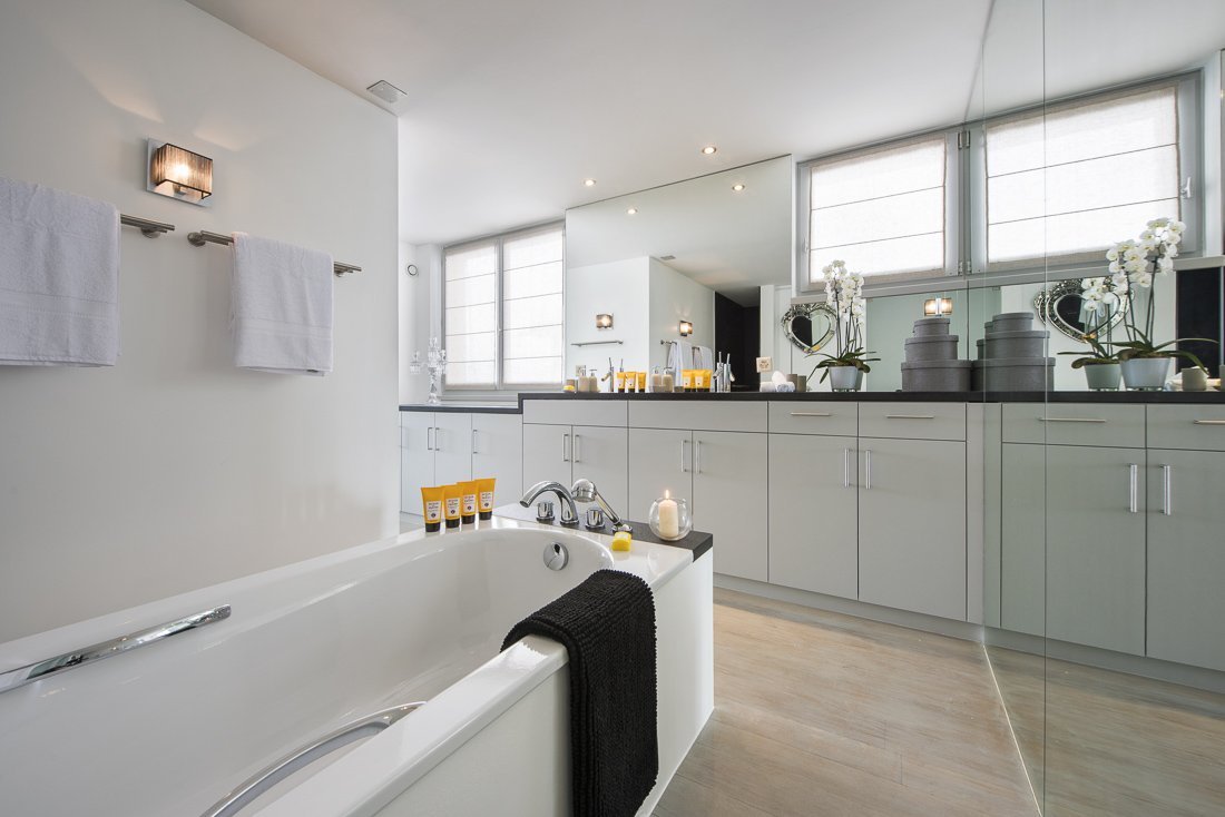 Мягкое освещение и роскошный текстиль нейтральных кремовых, серых и землисто-бежевых оттенков создают теплую, расслабляющую атмосферу.