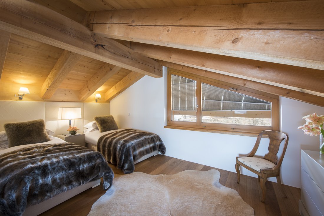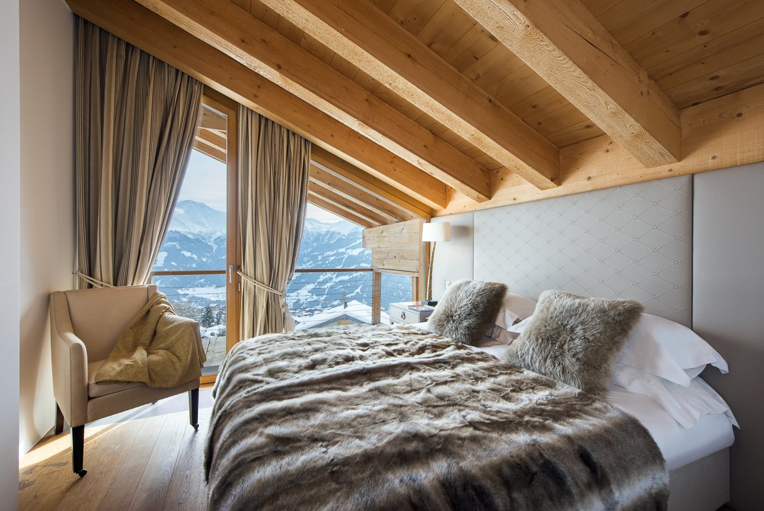 Все спальни светлые и просторные благодаря традиционному альпийскому декору, белоснежному белью и натуральному старому дереву.