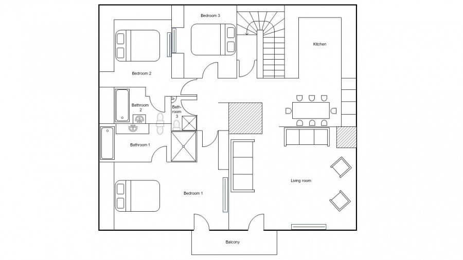 Апартаменты Medran Penthouse состоят из трех ванных комнат, две из которых с ванной, а одна с душем, две с туалетом и одна с душевой кабиной и отдельным туалетом. Есть два входа на балкон, один из гостиной, а другой из главной спальни. Отсюда открывается прекрасный вид на горы и долину внизу.